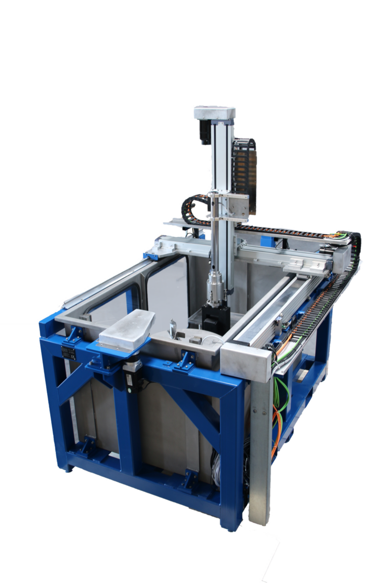 Sur ce châssis est installé un robot intégrant jusqu’à 6 axes de mouvements, coordonnés et programmables. Le traducteur se déplace ainsi en regard des zones d’intérêt (ROI) de la pièce à inspecter.