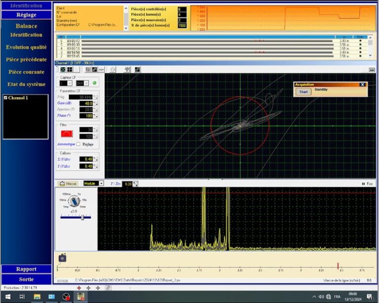 Production software centralizes and collects information from Eddy Current equipment to create comprehensive inspection reports. It is used in Non-Destructive Testing applications, notably for the inspection of tubes, bars and wires, but also for the production of individual parts.