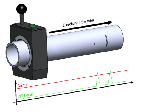 The product moves in translation inside the magnetizing unit. The Eddy Current encircling probe is located at its center.
