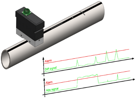 The welded rolled tube passes through the sectorial magnetizing system, which integrates a sectorial probe (differential and/or absolute) following the tube surface. The presence of defects varies the impedance of the coil, triggering a signal on the control screen. Results are displayed in real-time on the instrument screen in a time base and/or impedance plan, with real-time alarm management.