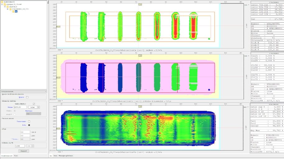Les résultats du contrôle par Ultrasons sont affichés en temps réel et la traçabilité est assurée par notre logiciel de production qui crée des rapports d’inspection complets