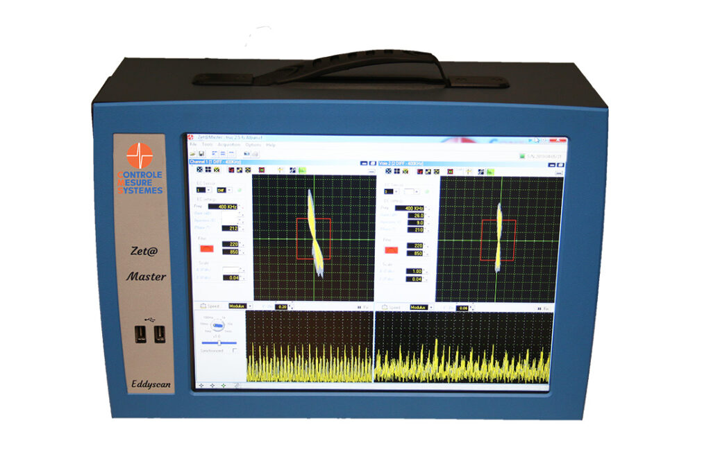 L’instrument Zet@Master est la version la plus performante de la gamme Zet@ : il est conçu pour la détection des défauts et les applications multi-capteurs. Multi-voies et multi-fréquences, Zet@Master permet une inspection avec des vitesses de production élevées, que ce soit en ligne et hors-ligne. Il permet de connecter plusieurs systèmes Courants de Foucault sur un seul appareil et s’intègre facilement sur une ligne de production.